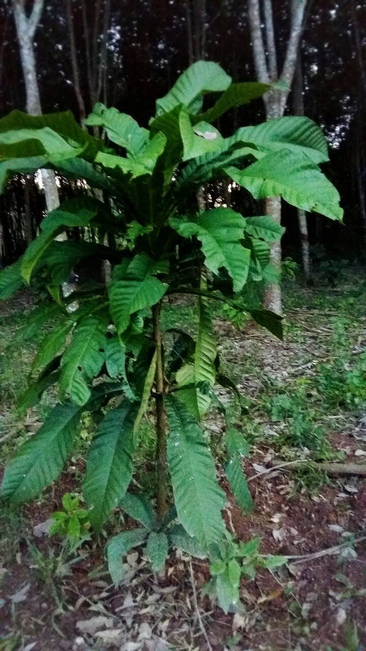 ใบ ออกเป็นใบเดี่ยว เรียงเวียนสลับกันที่ปลายยอด ใบมีลักษณะเป็นรูปใบหอก แผ่นใบบางมีสีเขียวเป็นมัน ขอบใบเป็นจักแบบซี่ฟัน โคนใบสอบแคบ ปลายใบแหลม เส้นใบด้านบนเป็นร่องลึกมองเห็นได้ชัดเจน ใบมีขนาดความยาวประมาณ 25-35 ซม. ใบอ่อนที่แตกขึ้นมาใหม่จะมีสีชมพู ก้านใบยาวประมาณ 1.5-2.5 ซม.