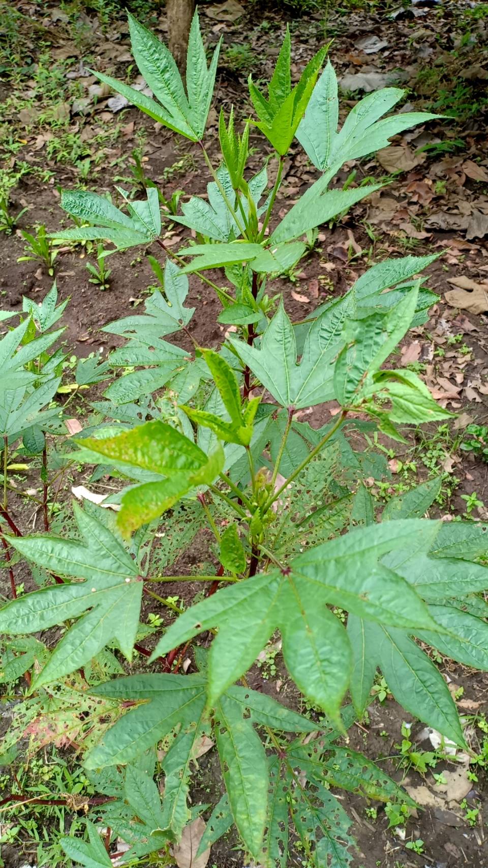 ลักษณะคล้ายรูปฝ่ามือ 3 แฉก หรือ 5 แฉก ใบเว้าลึกหรือเรียบ หรือใบเป็นรูปรีแหลม หรือรูปเรียวแหลม ขอบใบมีจักเป็นฟันเลื่อย ใบมีความกว้างและความยาวใกล้เคียงกันประมาณ 8-15 เซนติเมตร และก้านใบมีความยาวประมาณ 5 เซนติเมตร